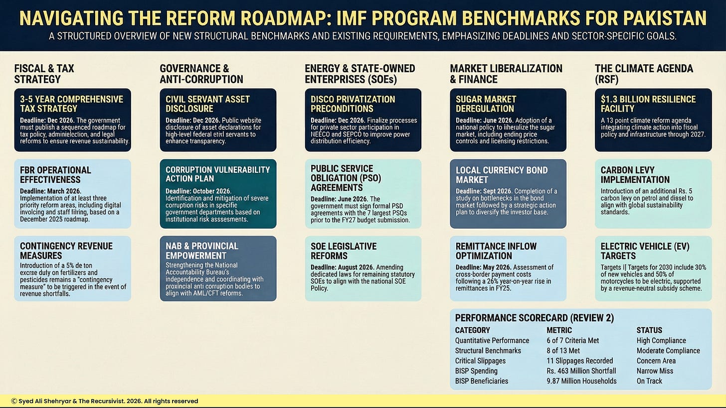 The IMF has set 11 structural benchmarks for Pakistan through the end of 2026.